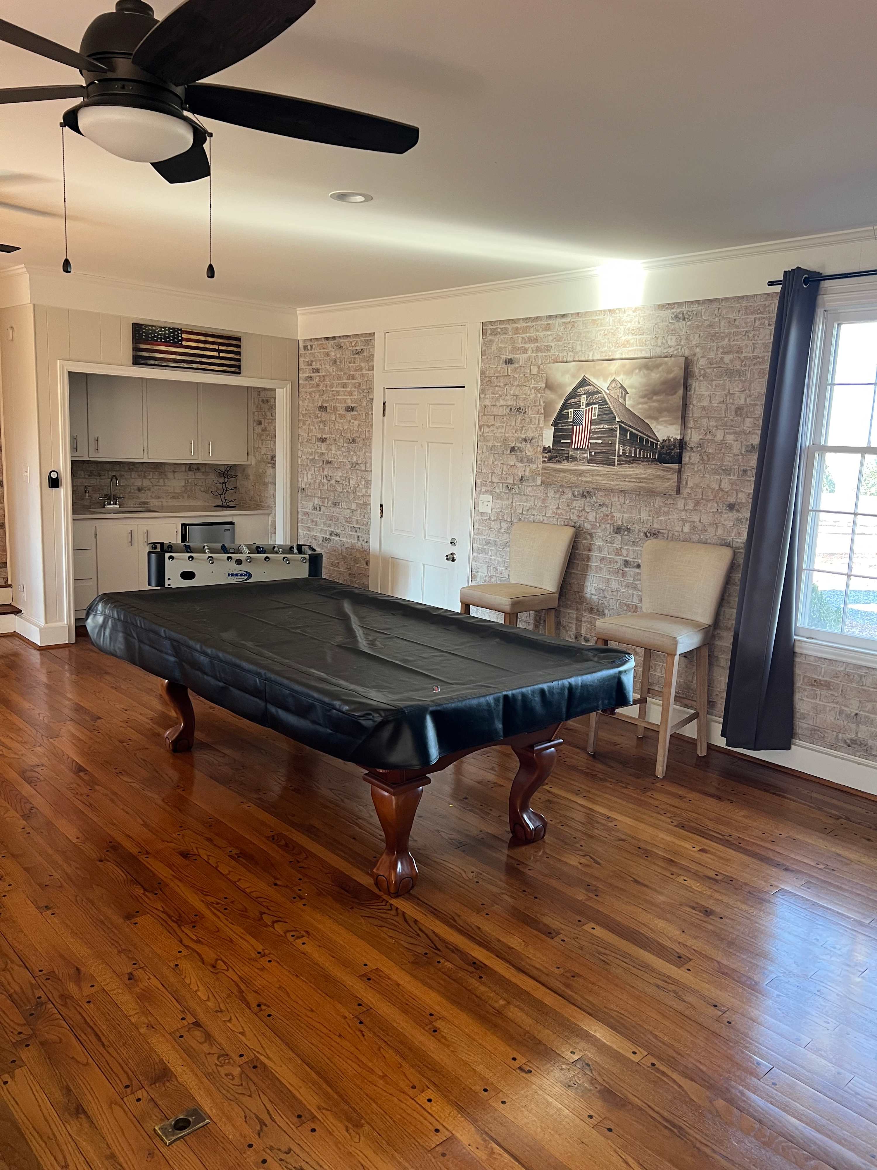 The perfect place for our big family, cozy and fun! The game room was a big hit with the kids! We will definitely be staying there again when we visit our family in NC, Thank you!