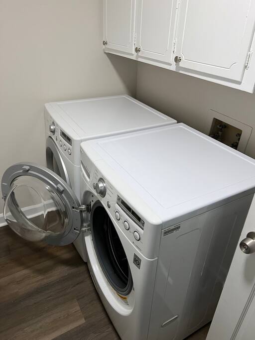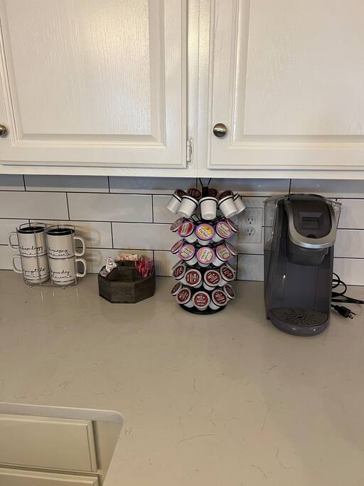 Five spacious bedrooms including 1 King and 4 Queen beds. All bedrooms include smart tv's, room darkening curtains, and the Queen bedrooms include custom luggage racks. There are 3.5 bathrooms. The master has an ensuite bathroom with two sinks and a walk in shower. There is a hall bathroom with a full bath tub and the 3rd bathroom has a large walk in shower. The large half bath is shared with the laundry room. All bedrooms have memory foam mattresses with luxurious linens and pillows. All bathrooms include plush towels and the showers include shampoo, conditioner and body wash soap dispensers. This well stocked kitchen has everything you need to cook family meals including pots and pans, casserole dishes, crock pot and a mixer. The kitchen also comes fully stocked with a selection of Keurig coffee and tea as well as sugars and creamers. Although coffee is not provided, there is also a regular coffee pot for brewing a large pot of coffee. The house has two separate family rooms for relaxing on very comfortable sectionals. One of these rooms includes a Pool Table and foosball table. There are also plenty of board games located in the 5th bedroom cabinets. A desk is provided for any office work that is needed. There is also a full sized washer and dryer.