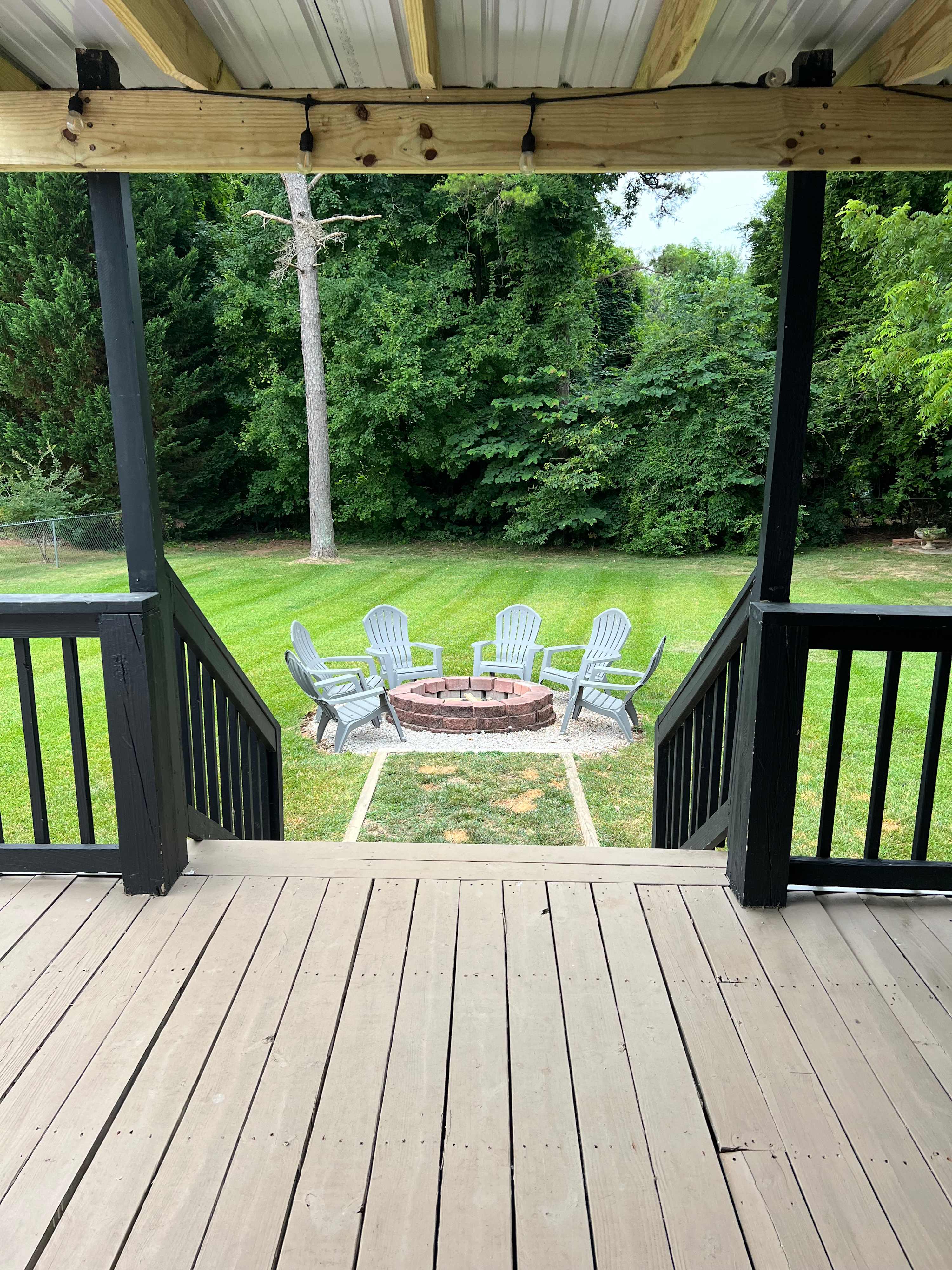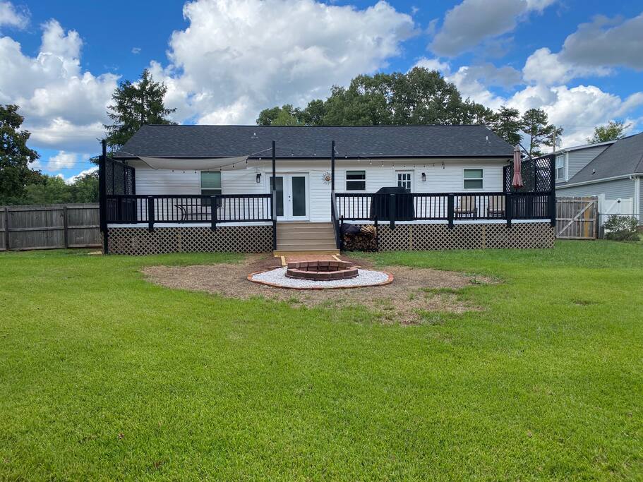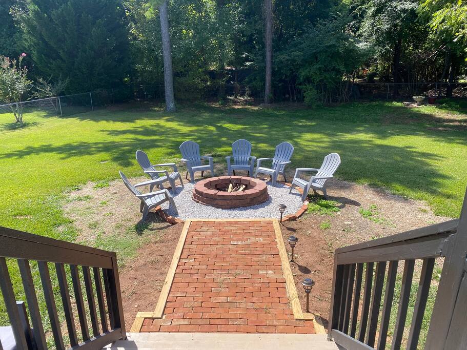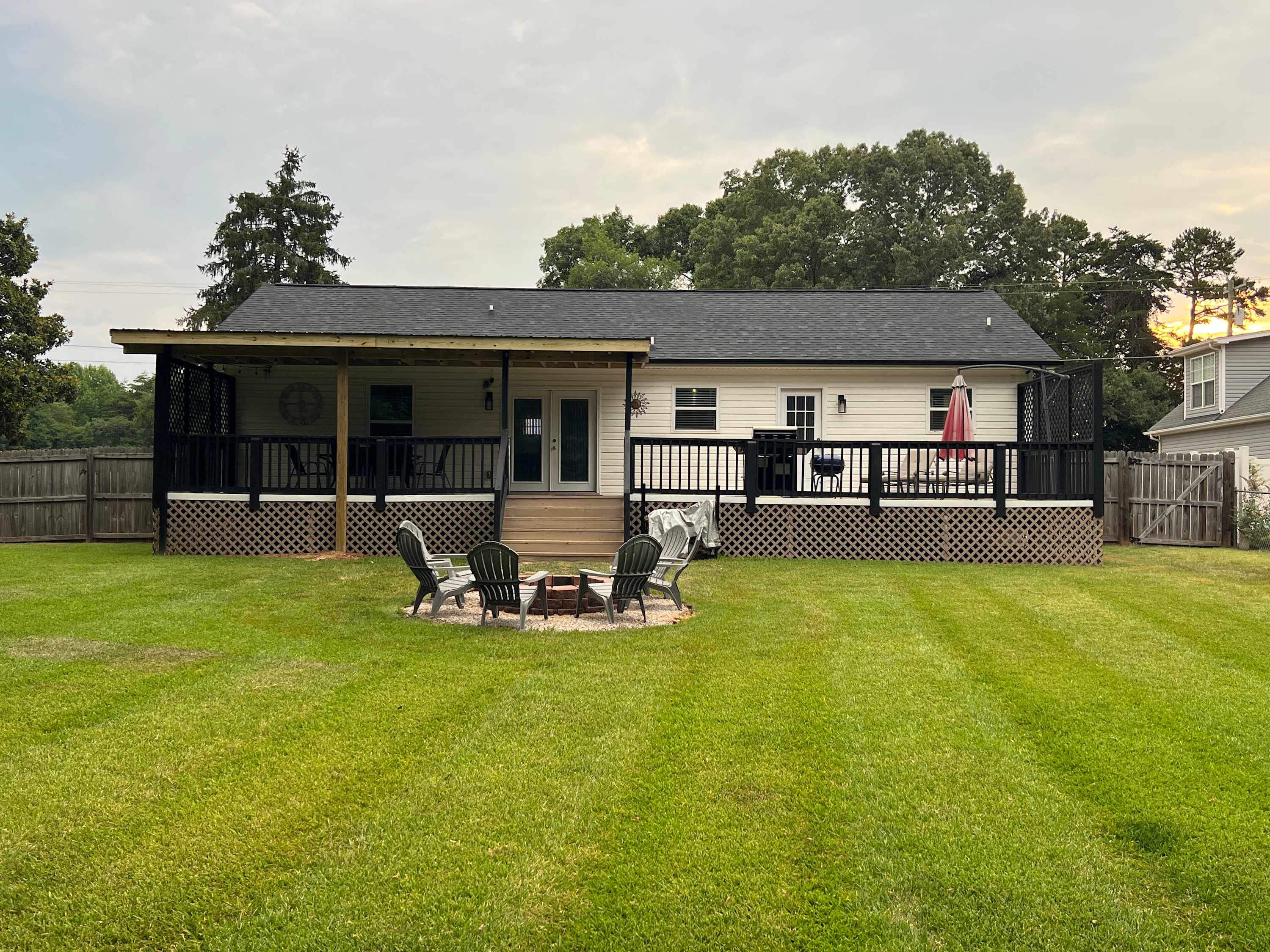 The Huntersville House is a cozy three bedroom two bath ranch located on a quiet street with less than a dozen homes.  This house includes all the amenities you could ask for including a huge deck with one section covered, patio table and chairs as well as a large fire pit, large back yard with tons of room.